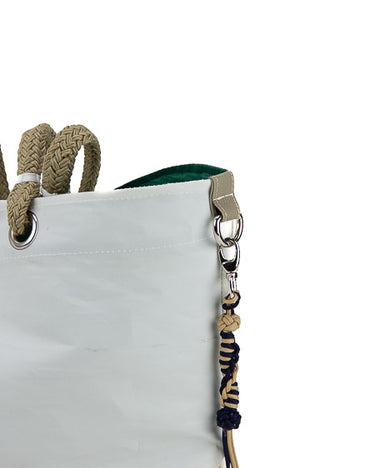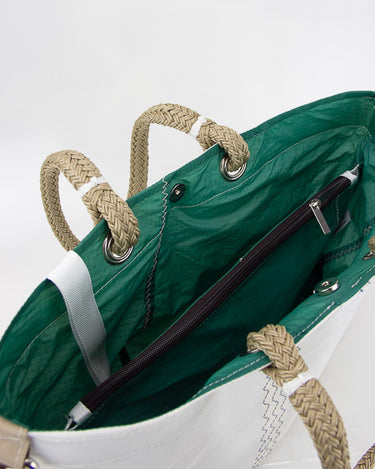 Per la produzione dei nostri articoli, utilizziamo esclusivamente il tessuto recuperato da vele usate. Gli inserti in tessuto tecnico derivano da surplus di produzioni. La minuteria, le zip, i nastri e gli accessori vengono fornite da aziende italiane.