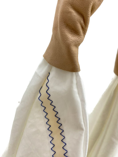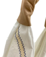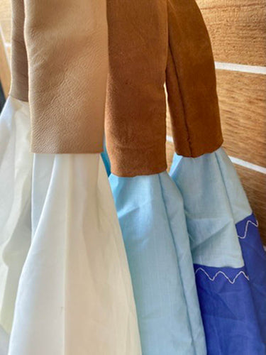 Il manico in vera pelle, rifinito artigianalmente, aggiunge un tocco materico e caldo che crea contrasto con la freschezza tecnica della vela.
