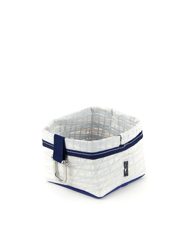 Questo cestino è realizzato con vele riciclate, rendendolo un'opzione ecologica, leggera ed elegante. Il grillo in acciaio inox da vero marinaio, garantisce che i tovaglioli rimanga al loro posto, e può essere usato sia come centrotavola che come organizer per i tuoi prodotti da bagno. Un'aggiunta moderna e sofisticata ad ogni ambiente.