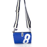 Versione sportiva con numero velico applicato con cuciture zig-zag, si adatta al tuo stile. Scegli di portarla come borsa mini a tracolla o trasformala in una perfetta borsa clutch aggiungendo il prezioso manico annodato, sarà perfetta per le tue serate informali in stile Riviera.