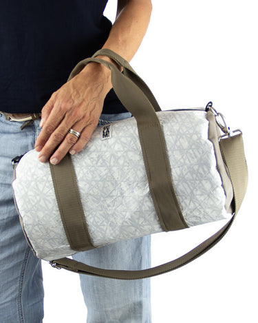 Per la produzione dei nostri articoli, utilizziamo esclusivamente il tessuto recuperato da vele usate. Gli inserti in tessuto tecnico derivano da surplus di produzioni. La minuteria, le zip, i nastri e gli accessori vengono fornite da aziende italiane.
