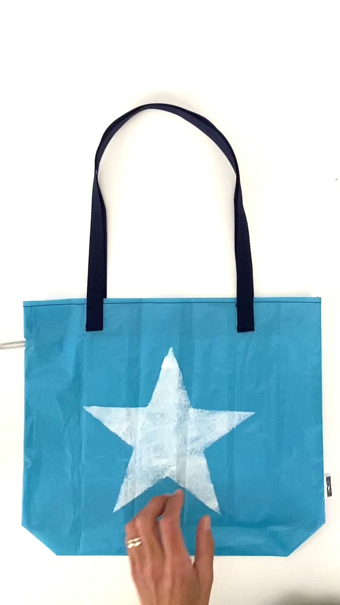 Scopri Velina, la shopper in vela riciclata da 50 grammi, e Stiva, la sua custodia che diventa un pratico porta soldi.