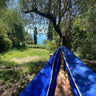 L'amaca di Rivelami è realizzata con il tessuto di una vela di un Super Yacht, cantiere Wally, la vela era stata prodotta dalla veleria North Sails