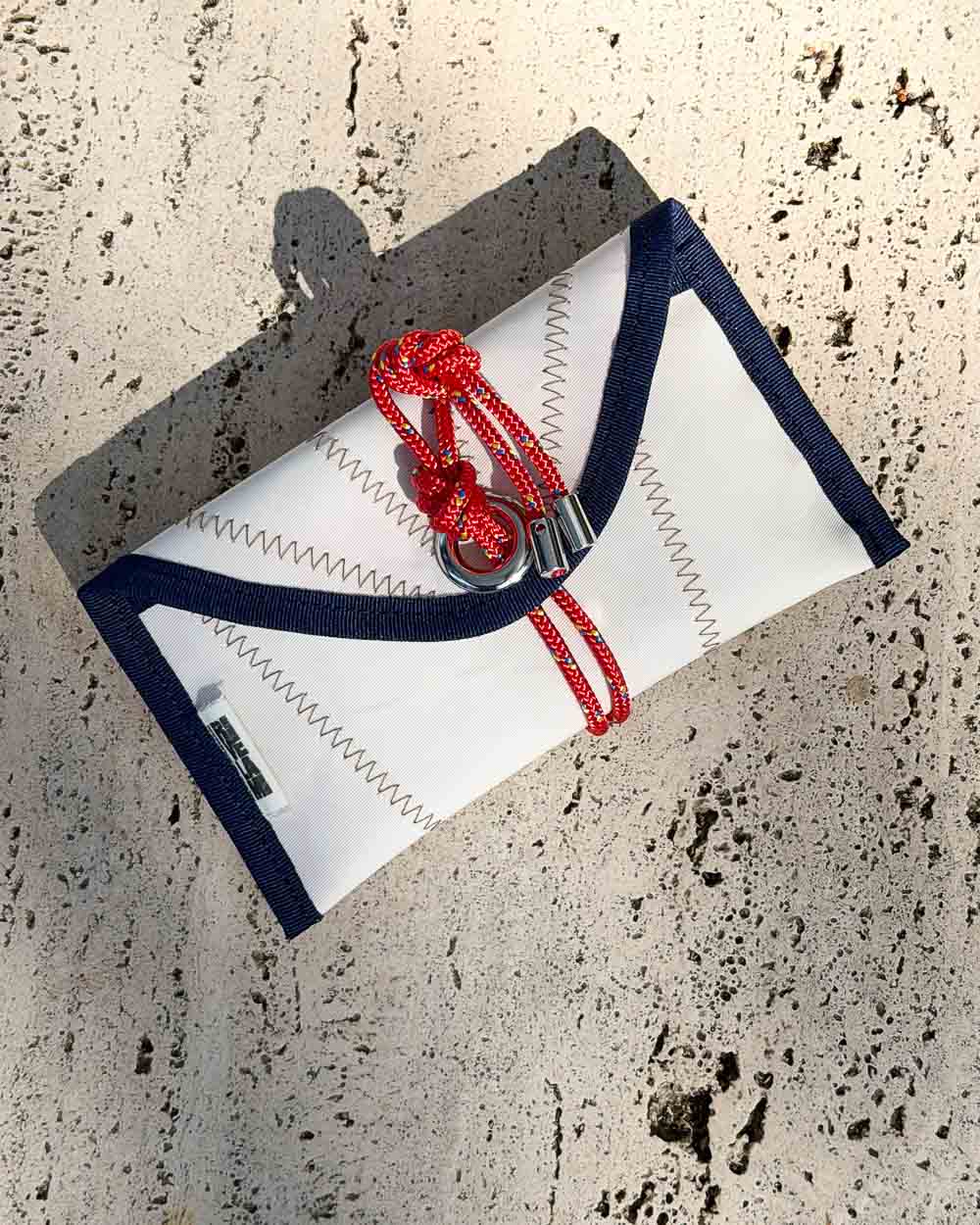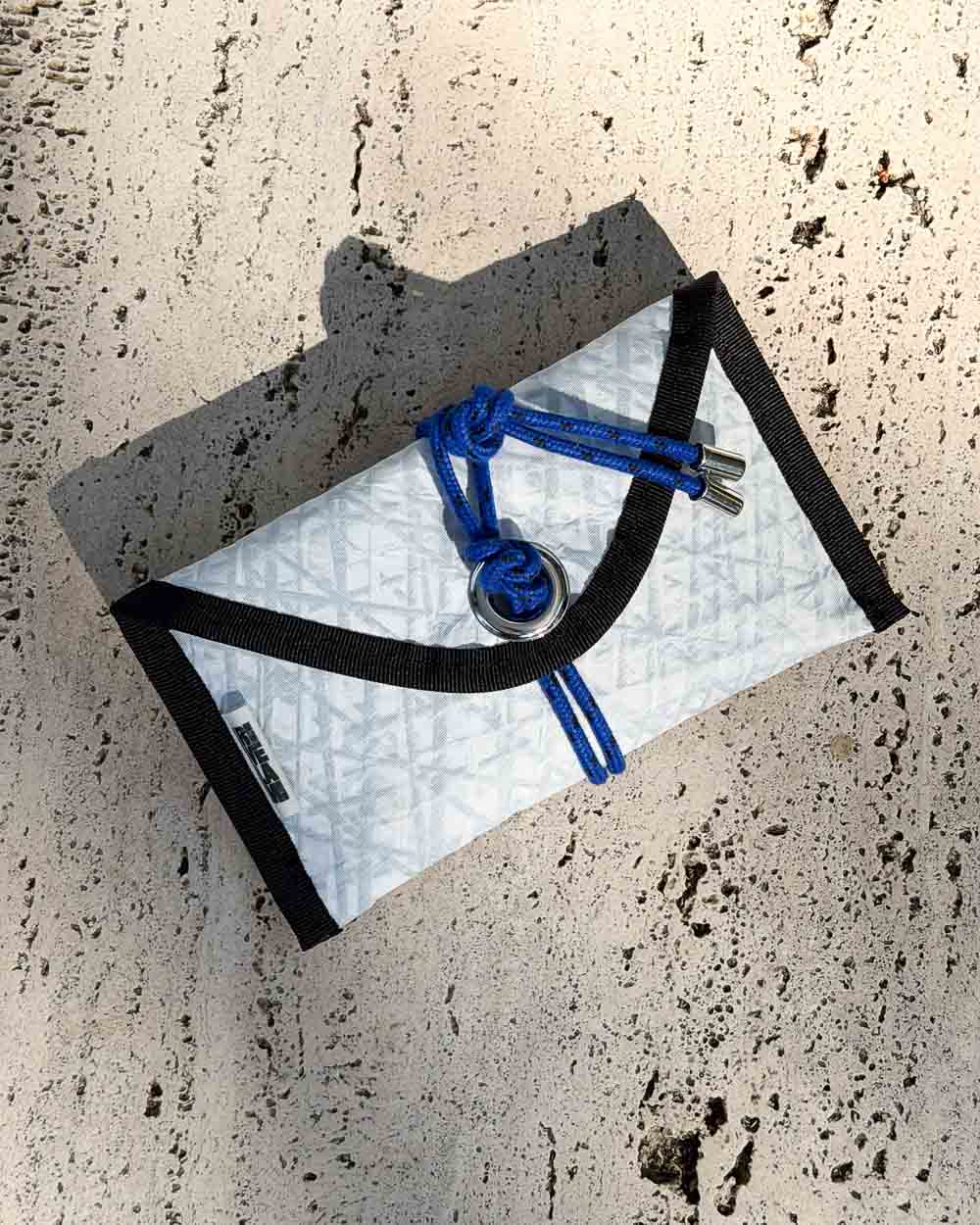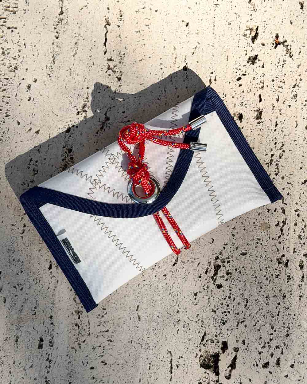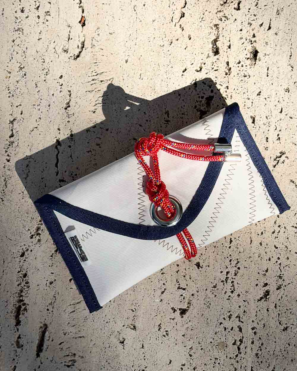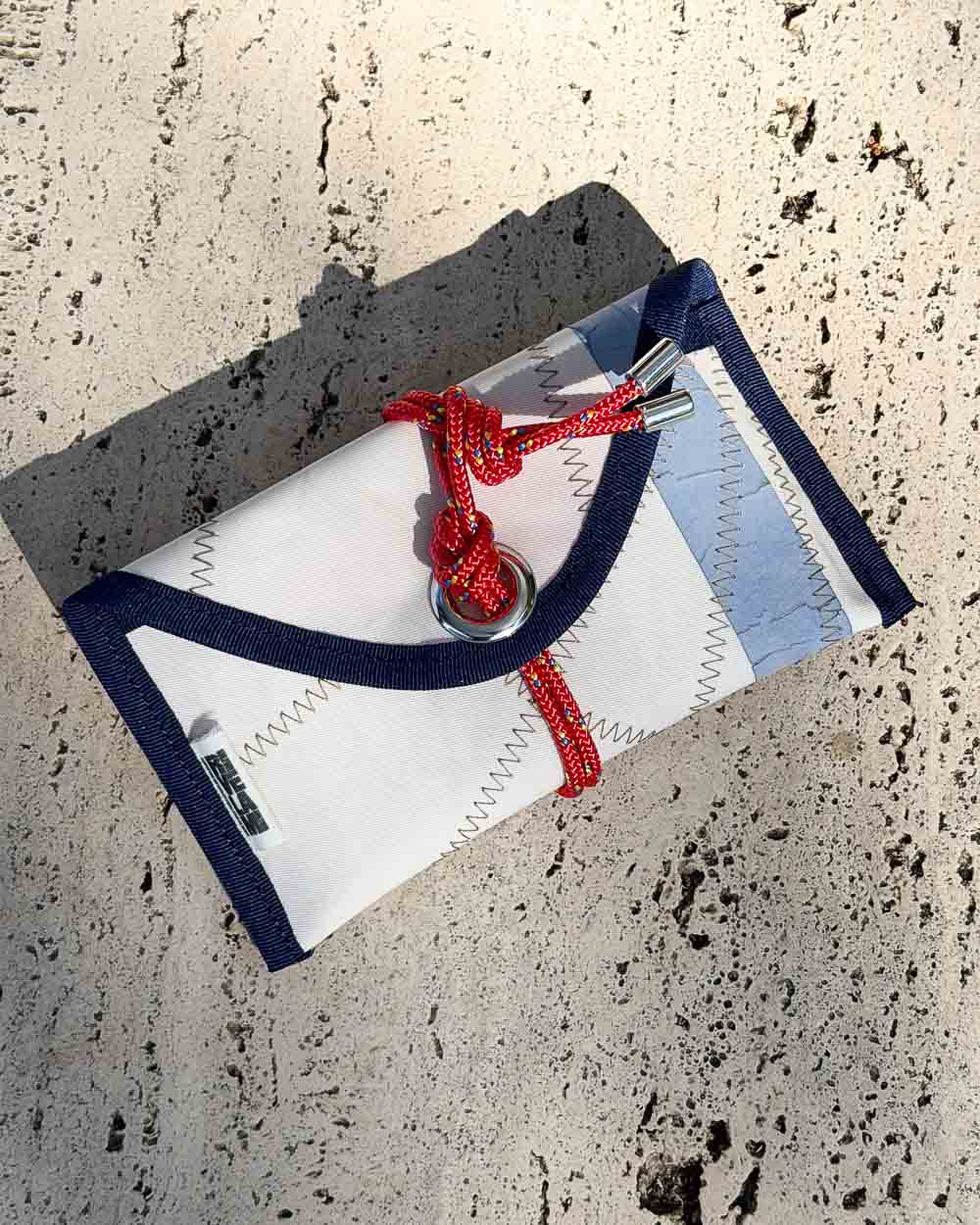 Custodia realizzata con vele recuperate, imbottita per proteggere al meglio i tuoi occhiali o il tuo smartphone. Il tipo di vela rende la custodia robusta e protegge dagli schizzi d'acqua quello che vorrai tenere al sicuro.