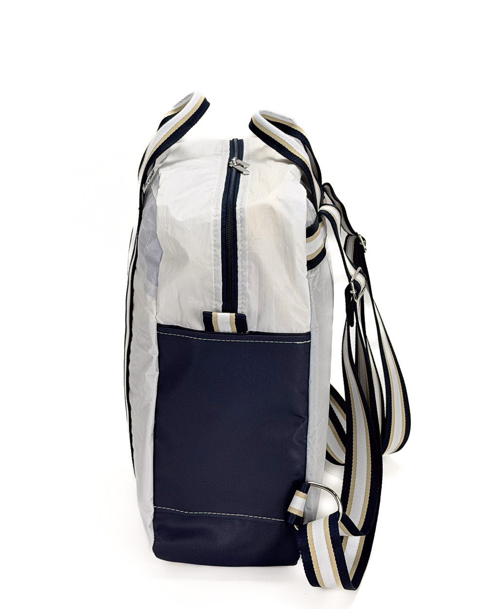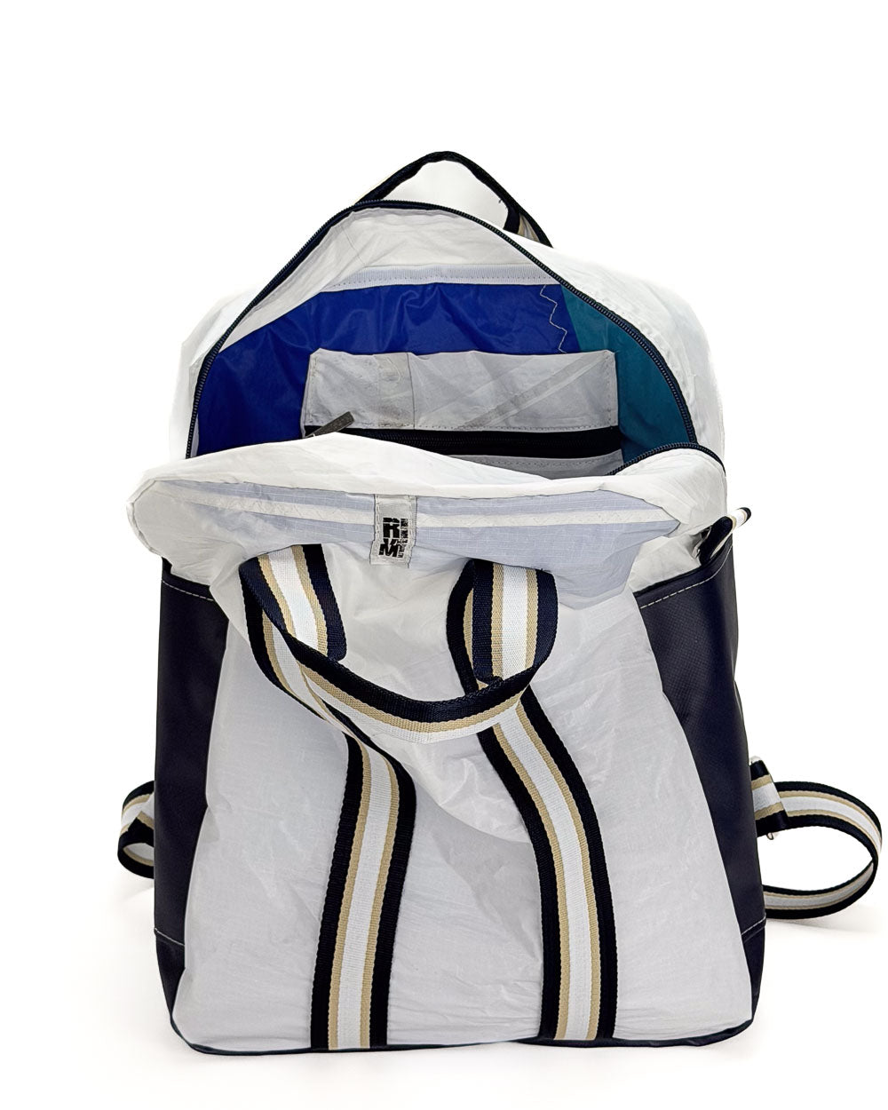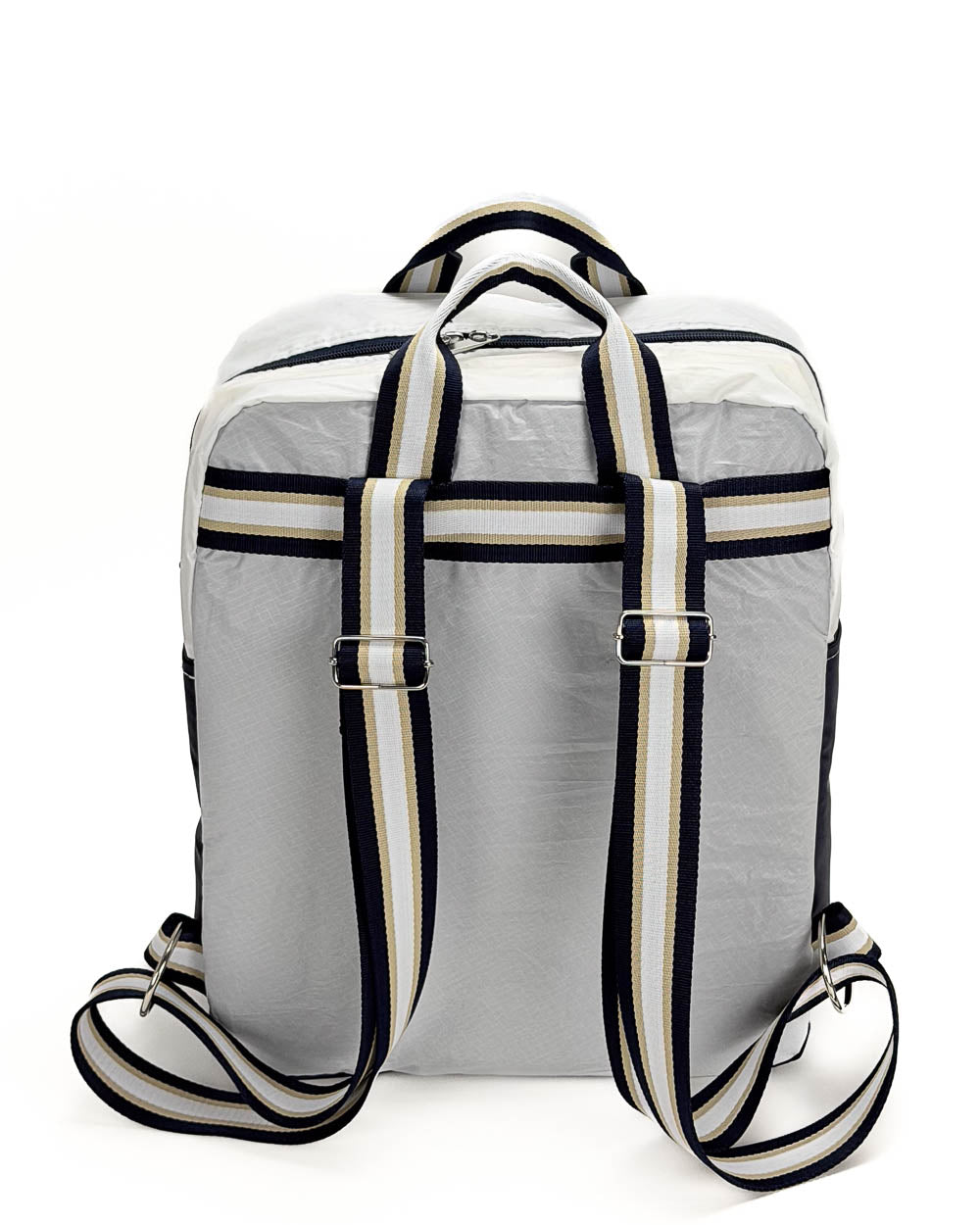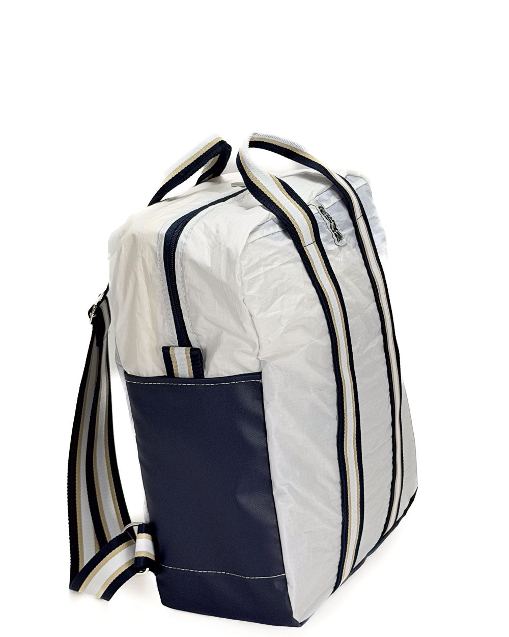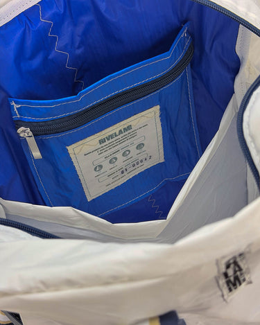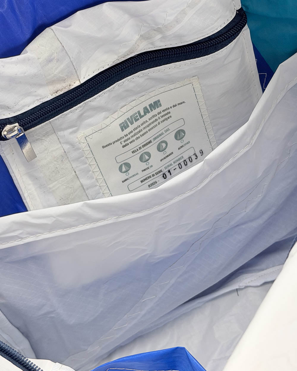 Per la produzione dei nostri articoli, utilizziamo esclusivamente il tessuto recuperato da vele usate. Gli inserti in tessuto tecnico derivano da surplus di produzioni. La minuteria, le zip, i nastri e gli accessori vengono fornite da aziende italiane.