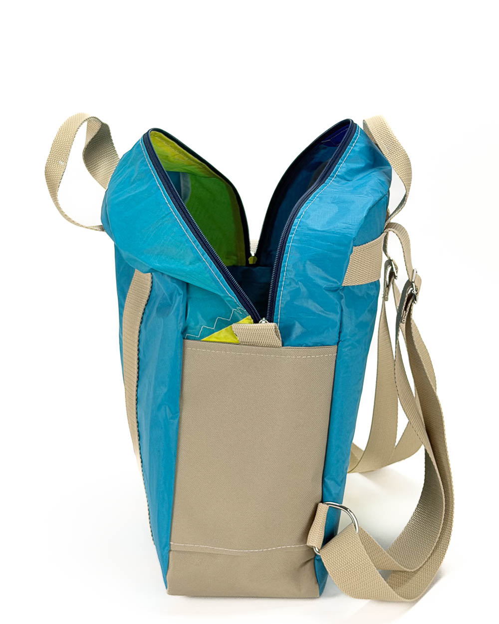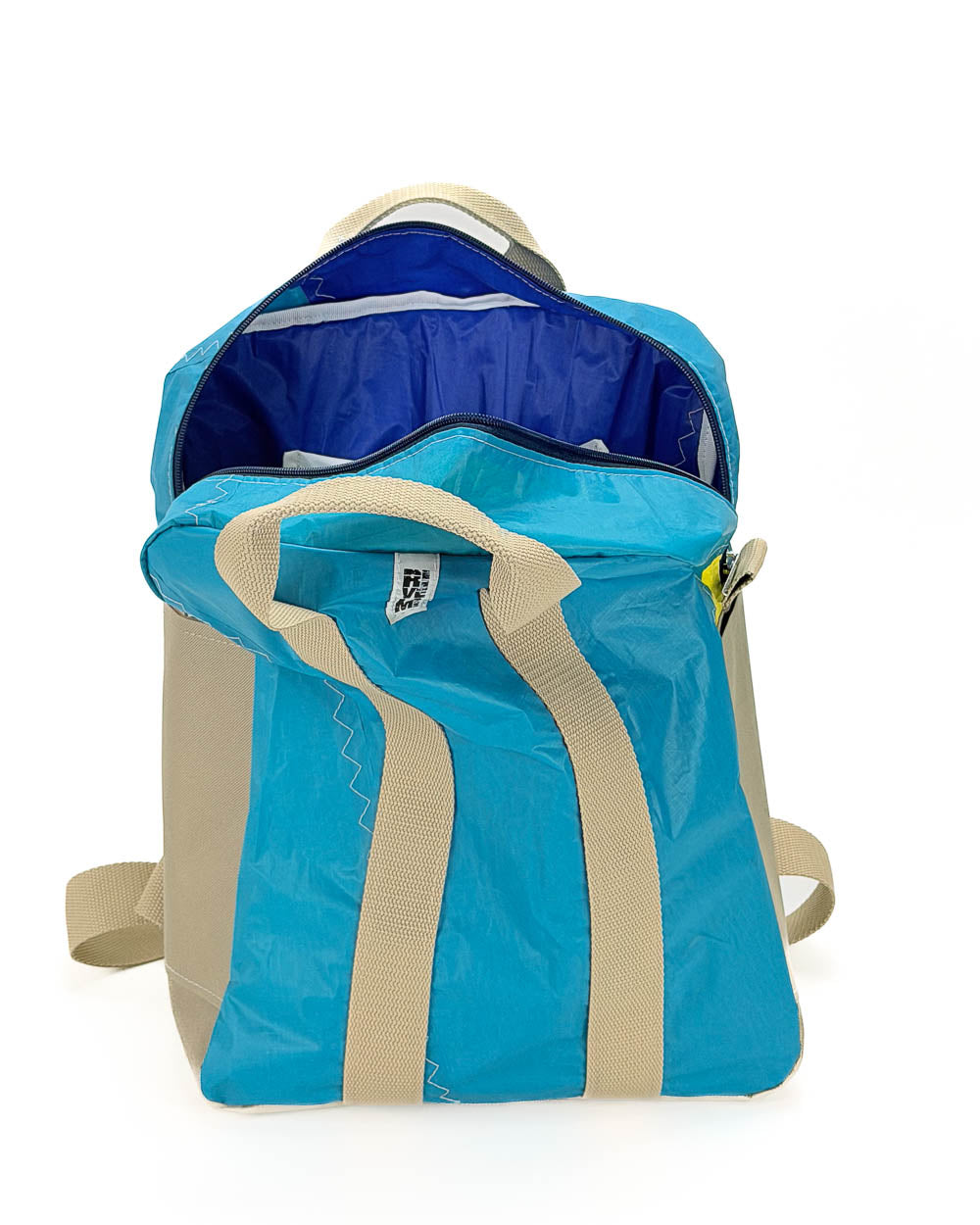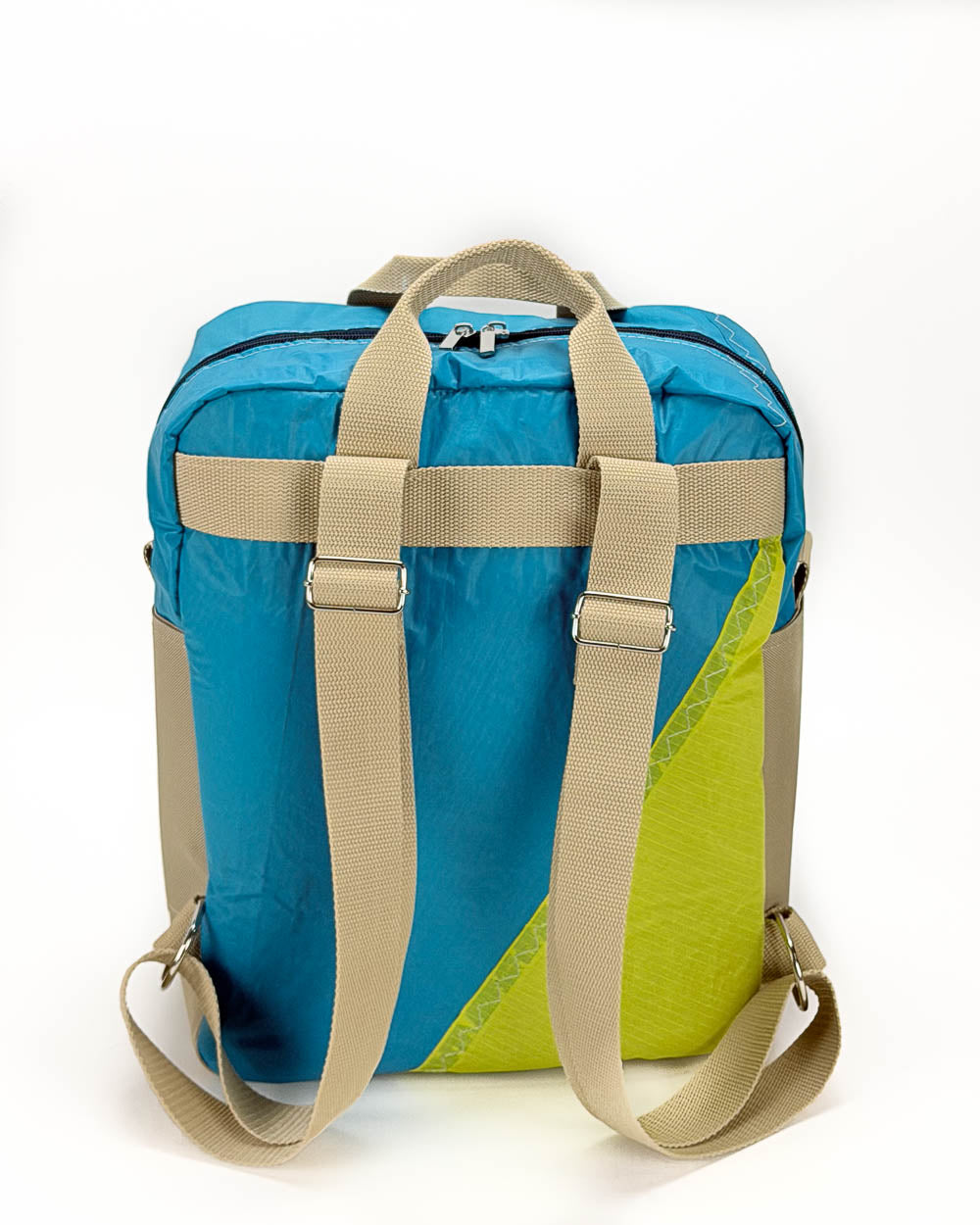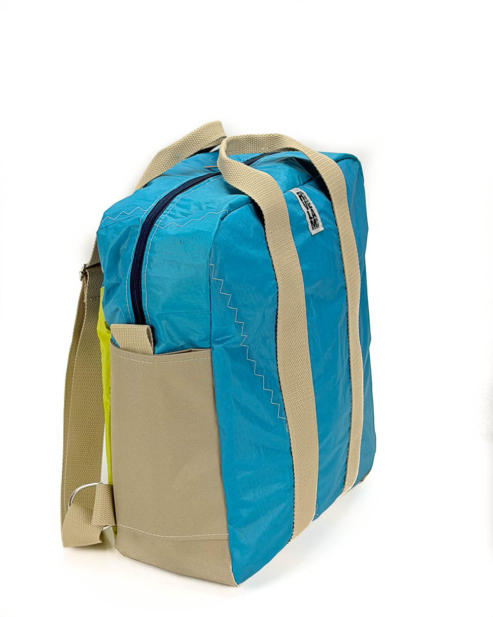 Per la produzione dei nostri articoli, utilizziamo esclusivamente il tessuto recuperato da vele usate. Gli inserti in tessuto tecnico derivano da surplus di produzioni. La minuteria, le zip, i nastri e gli accessori vengono fornite da aziende italiane.
